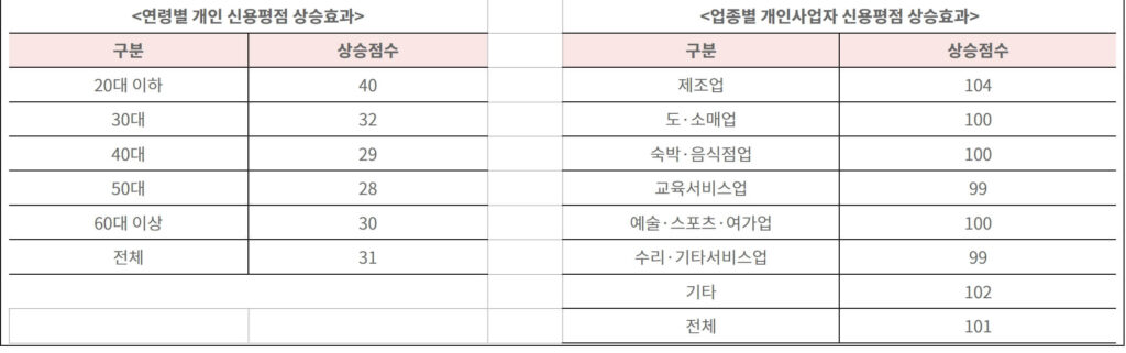 - 신용점수 평균 31점 상승