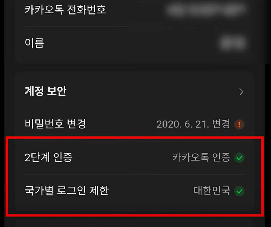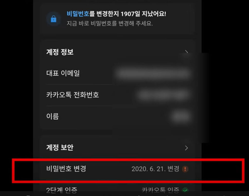 - 설정 > 카카오 계정 > 비밀번호 변경