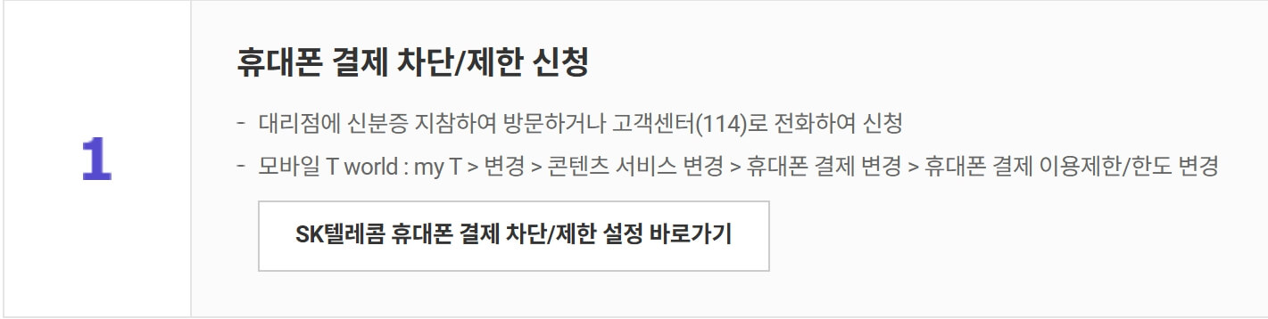 1. 휴대폰 결제 차단 또는 한도 제한
