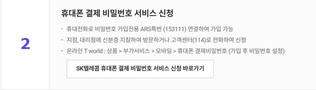 2. 휴대폰 결제 비밀번호 설정